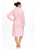 Dámský župan volného, pohodlného střihu s dlouhými rukávy, kapsami a páskem na zavazování. Župan je vyroben z látky příjemné na dotek.