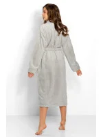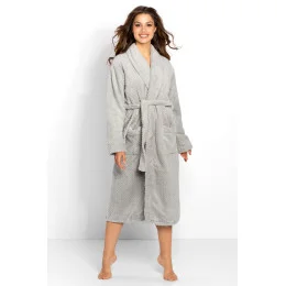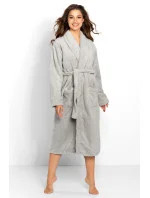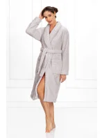 Dlouhý elegantní dámský župan se šálovým límcem. Vyrobeno z vysoce kvalitní, měkké, hebké pleteniny s jemnou strukturou. Dlouhé rukávy zakončené manžetou. Kapsy na bocích v úrovni boků. Vázání v pase.