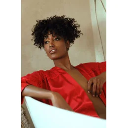 Košilka Femi je krásný a klasický model saténového županu. Saténový materiál v kombinaci s krajkovým lemováním v horní části mu dodává eleganci a smyslnost. Saténový župan je ideální volbou pro ženy, které se chtějí cítit smyslně a elegantně večer i ráno. Tato měkká saténová tkanina jemně obepíná tělo a každá žena se díky ní cítí krásná a výjimečná. Pokud chcete, aby váš každý den začínal i končil výjimečně, rozhodněte se pro koupi saténového županu.