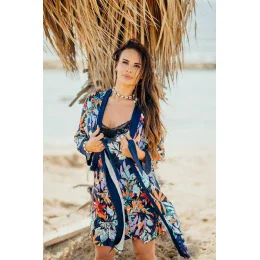 Vzdušný župan s 3/4 rukávy v energickém květinovém vzoru je ideální volbou pro ty, kdo hledají jedinečně ženský kousek do své sbírky nočního prádla. Župan poskytuje lehkost a volnost pohybu a díky dynamickým květinovým vzorům dodává nádech romantiky a elegance. Župan byl navržen a ušit v Polsku. Pečlivý důraz na detail a vysoká kvalita zpracování jsou zárukou trvanlivosti a pohodlného nošení.