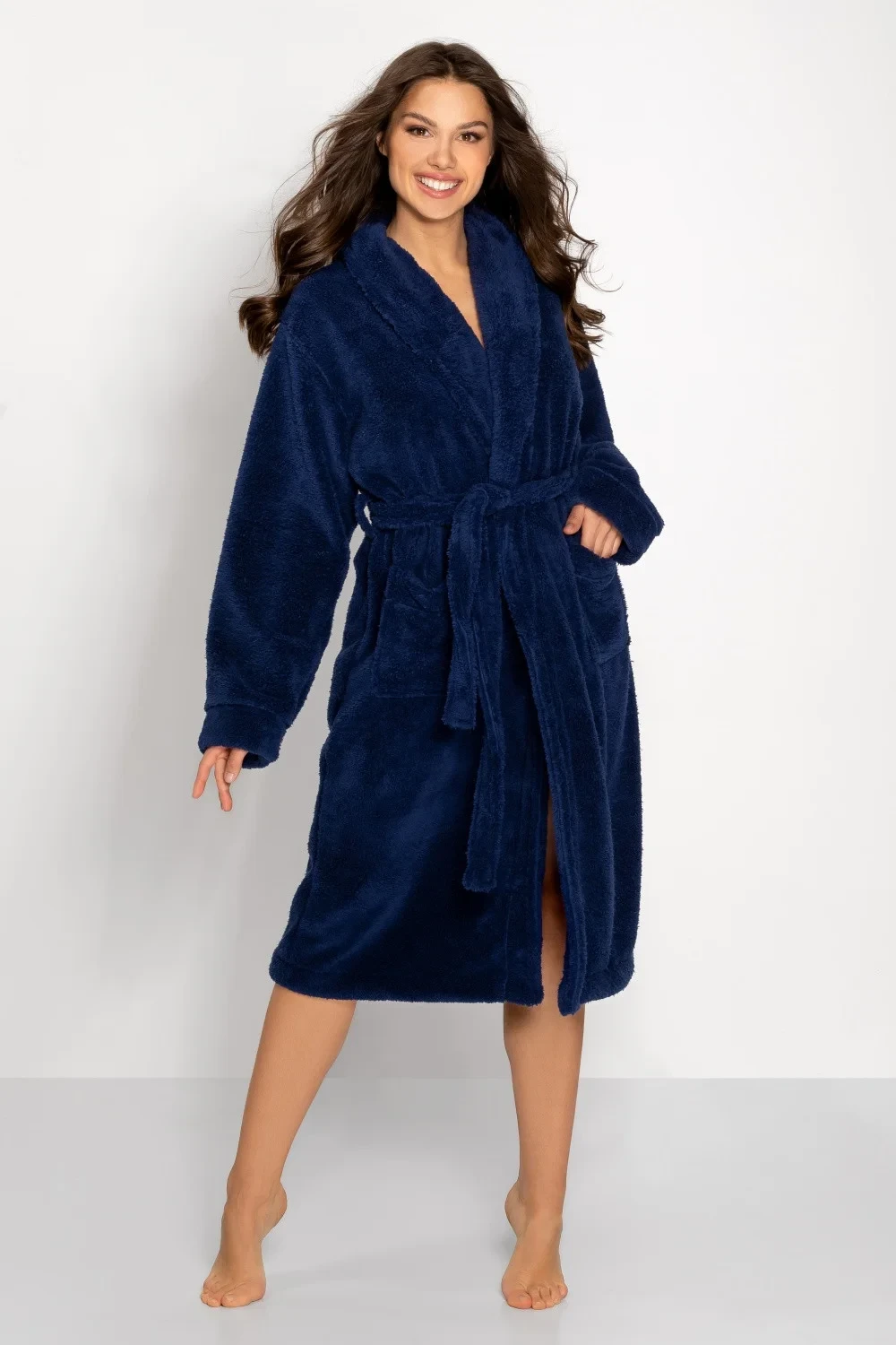 Náš dámský župan není pouhým doplňkem šatníku, ale skutečnou oázou pohodlí a elegance. Má prestižní certifikát OEKO-TEX Standard 100, který zaručuje, že použité tkaniny neobsahují látky škodlivé pro pokožku a zdraví. Můžete si tak užívat nejen pohodlí, ale také jistotu, že pečujete o svou pohodu. Díky elegantnímu designu se tento župan skvěle hodí nejen jako součást vašeho domácího šatníku, ale také jako domácí oblečení, které dodá vaší relaxaci výjimečný nádech. Díky elegantnímu límci a rukávům zakončeným manžetami vypadá mimořádně stylově. Hladká tkanina, z níž je vyroben, dokonale obepíná tělo a nabízí pocit luxusu a měkkosti. Díky volnému a pohodlnému střihu je navíc župan mimořádně příjemný na nošení a zajišťuje volnost pohybu. Funkčnost tohoto výrobku podtrhují praktické kapsy na bocích, které umožňují uložit drobné předměty nebo ruce, když je chcete schovat před chladem. Zavazování na pásek vám umožní upravit si župan podle svých preferencí a poskytne vám dodatečnou oporu kolem pasu. Župan má navíc dlouhé rukávy, takže je ideální pro chladnější večery. Výrobek byl vyroben v Polsku, což je zárukou vysoké kvality zpracování. Díky péči o detaily a důrazu na pohodlí se náš župan stane nepostradatelnou součástí vašich každodenních rituálů a chvil odpočinku.