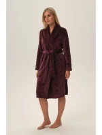 Měkký a příjemný župan pro ženy v uvolněném a pohodlném střihu, ideální pro každodenní použití a jako domácí oblečení. Vyrobený z látky s raženým vzorem, který dodává celku elegantní a ženský vzhled. Model má kapuci, praktické kapsy a pásek na stažení, který umožňuje přizpůsobit župan postavě. Délka po kolena zajišťuje pohodlí a volnost pohybu. Župan je balený v plastovém sáčku, skvělý také jako dárek.