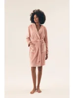 Elegantní a pohodlný ženský župan s volným střihem, vyrobený z měkké, hladké látky. Sahá před koleno, poskytující pohodlí a volnost pohybu. Model je vybaven praktickou kapucí a kapsami, ideální pro drobné příslušenství. Šněrování v pase umožňuje ideální přizpůsobení postavě. Dlouhý rukáv zajistí teplo a elegantní balení do tašky ho dělá skvělým dárkem. Perfektní volba pro večerní relaxaci a ranní rituály.