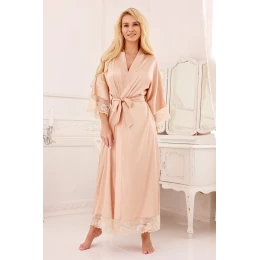 Dlouhý, saténový župan v luxusním provedení Sumatra. Vyroben z jemné, tekoucí satény, která se s každým pohybem chová za majitelkou jako kouzelná mlha. Spodek a rukávy byly zdobeny vysoce kvalitní krajkou, aby zdůraznily výjimečnost. Pásek v pasu umožňuje ideální přizpůsobení. Župan Sumatra uspokojí i ty nejnáročnější ženy. Bude také skvělou volbou jako dárek. Prádlo balené v krásném, velkém balení ideálním na dárek.