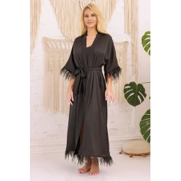 Dlouhý, majestátní župan vyrobený z tekoucí, připomínající hedvábí satén na dotek. Výjimečnost županu Diva zdůrazňují peří, která zdobí rukávy a spodek. Jemnost a lehkost peří dělá, že se s každým pohybem pohybují za vámi, vytvářejíce kouzelný obraz. Pokud hledáte něco výjimečného, tak jste s výběrem županu Diva udělali ideálně. Doporučujeme také halenku Luna, kterou zdobí také měkká peří. Spodní prádlo zabalené v krásném, velkém balení ideální na dárek.
