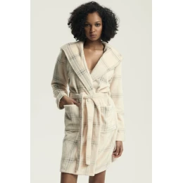 Pohodlný a stylový župan pro ženy s uvolněným a pohodlným střihem, vyrobený z měkkého materiálu s potiskem, který mu dodává ženský charakter. Model s kapucí a praktickými kapsami spojuje pohodlí s funkcionalitou. Délka po kolena zajistí volnost pohybu a šněrování na pásek umožní ideální přizpůsobení postavě. Župan je dodáván v plastovém sáčku, skvělá volba také jako dárek.
