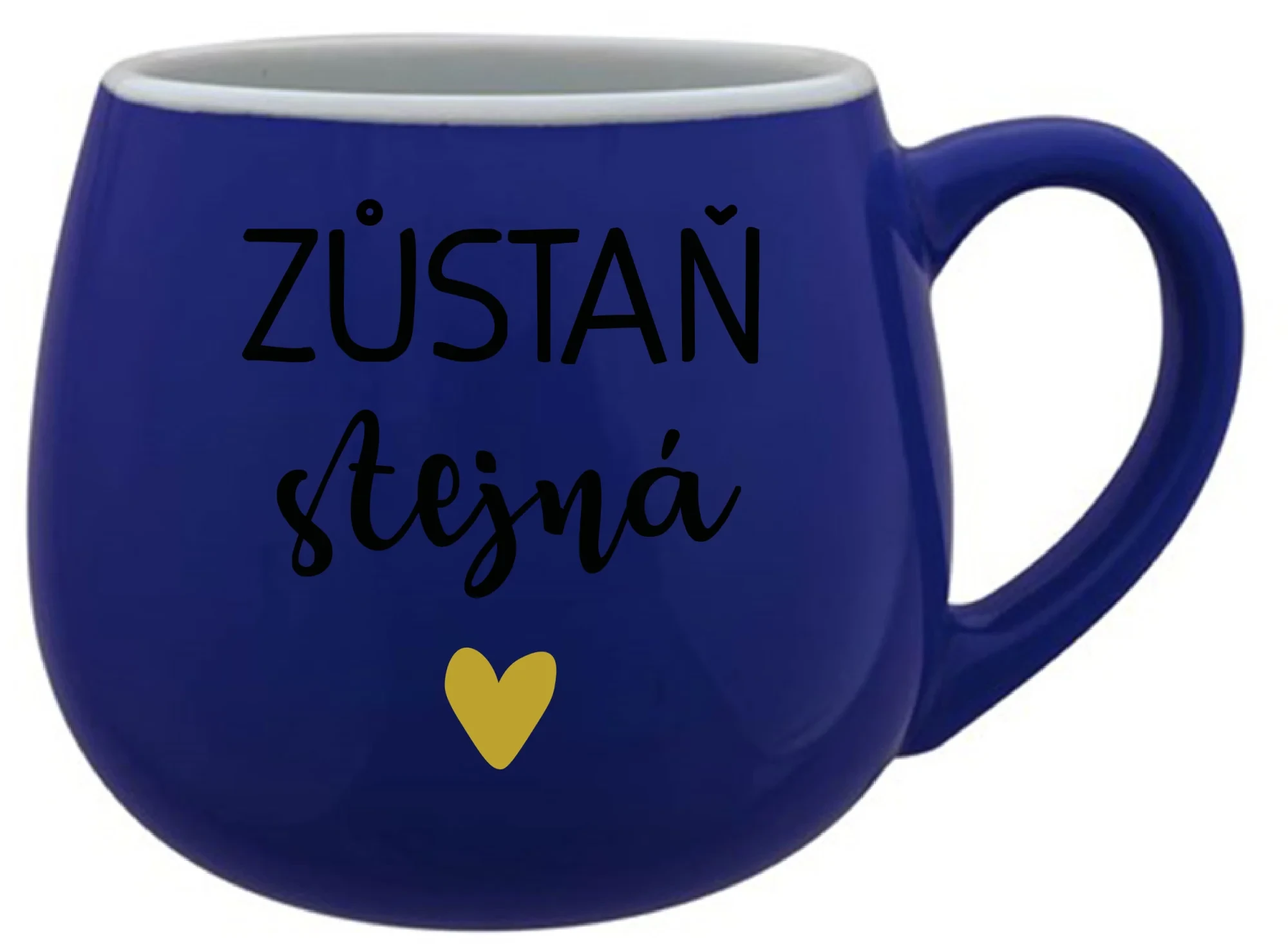 ZŮSTAŇ STEJNÁ - modrý keramický hrníček 300 ml
