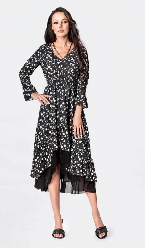 Černé vzdušné dámské šaty s ozdobnou spodní částí Ann Gissy (DLY017)