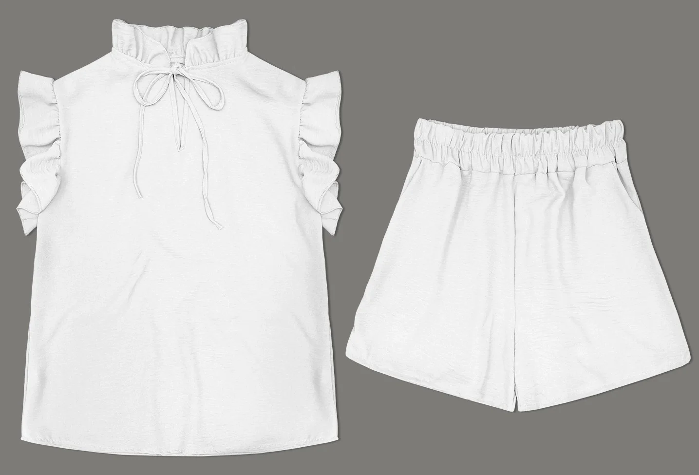 Šortky mají dvě kapsy. V pase modelu je guma.